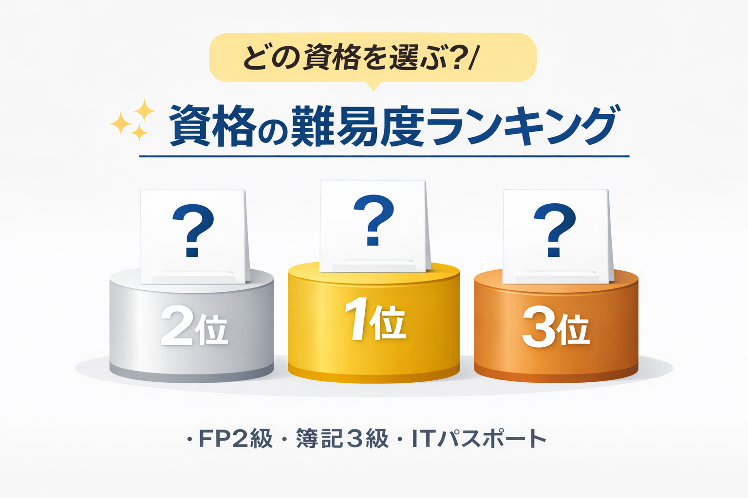 この記事では、FP2級・簿記3級・ITパスポートの3つを実際に受けた体験をもとに、「合格率ではわからないリアルな難易度」をランキング形式で解説します。